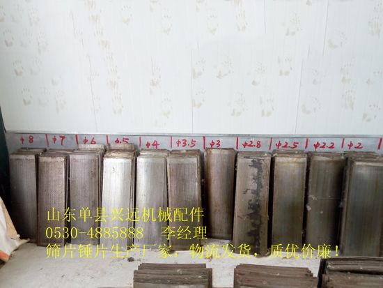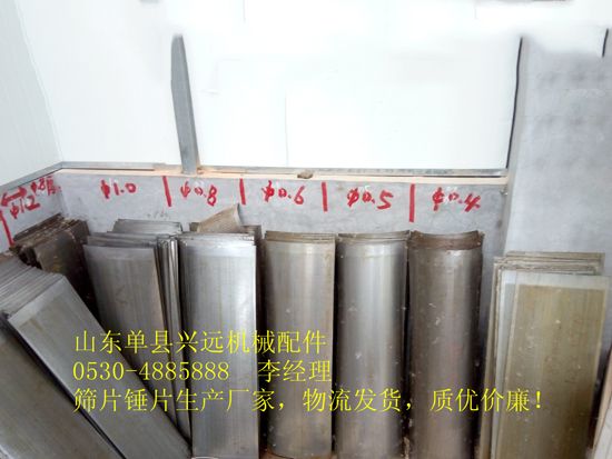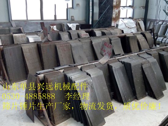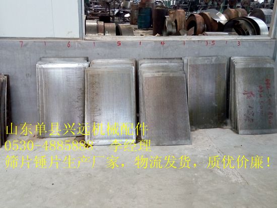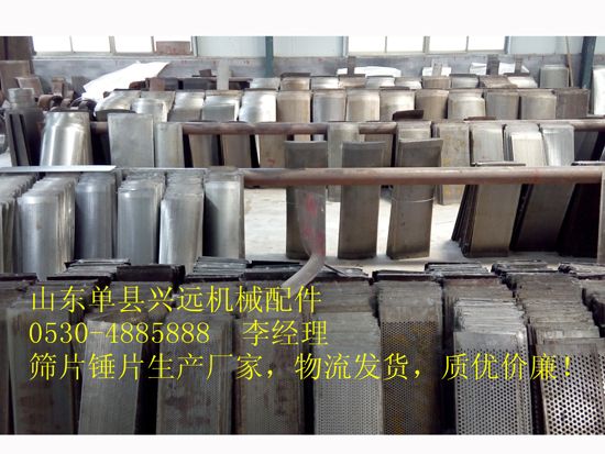 山东单县兴远机械配件有限公司(原单县筛片厂)成立于1986年,现位于单县经济开发区南环路北,占地20余亩,资产1000余万元。我公司是粉碎机筛片、不锈钢筛板、粉碎机锤片、刀片等机械冲孔部件的专业生产制造直销商。所有型号及材质的筛片,锤片,本公司都可以加工定做。只需要您提供长宽尺寸,板厚及孔型或者孔径大小即可。